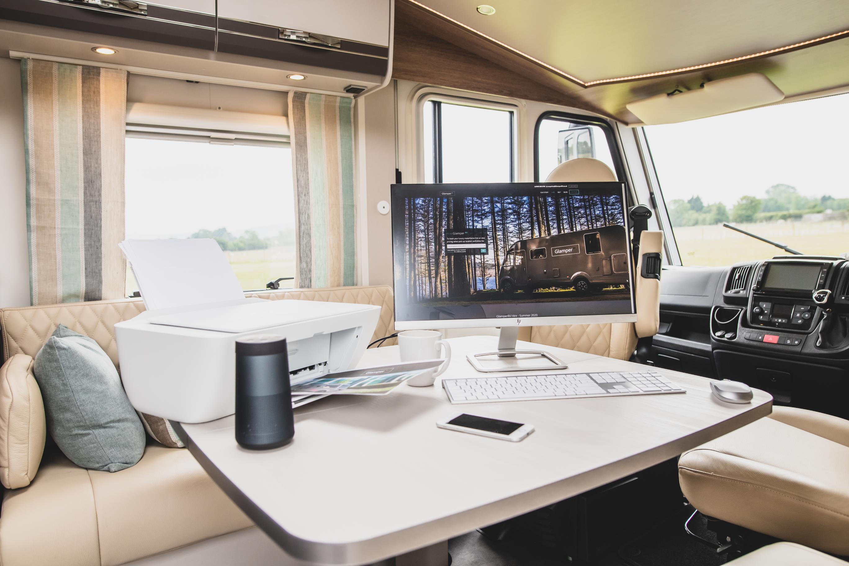 With home working looking set to stay, GlamperRV, the bespoke luxury motorhome brand, is launching a new ‘business class’ home office – the GlamperRV Business Line – which can also be used as a mobile office hotel, and on post lockdown weekends away or adventurous touring holidays.